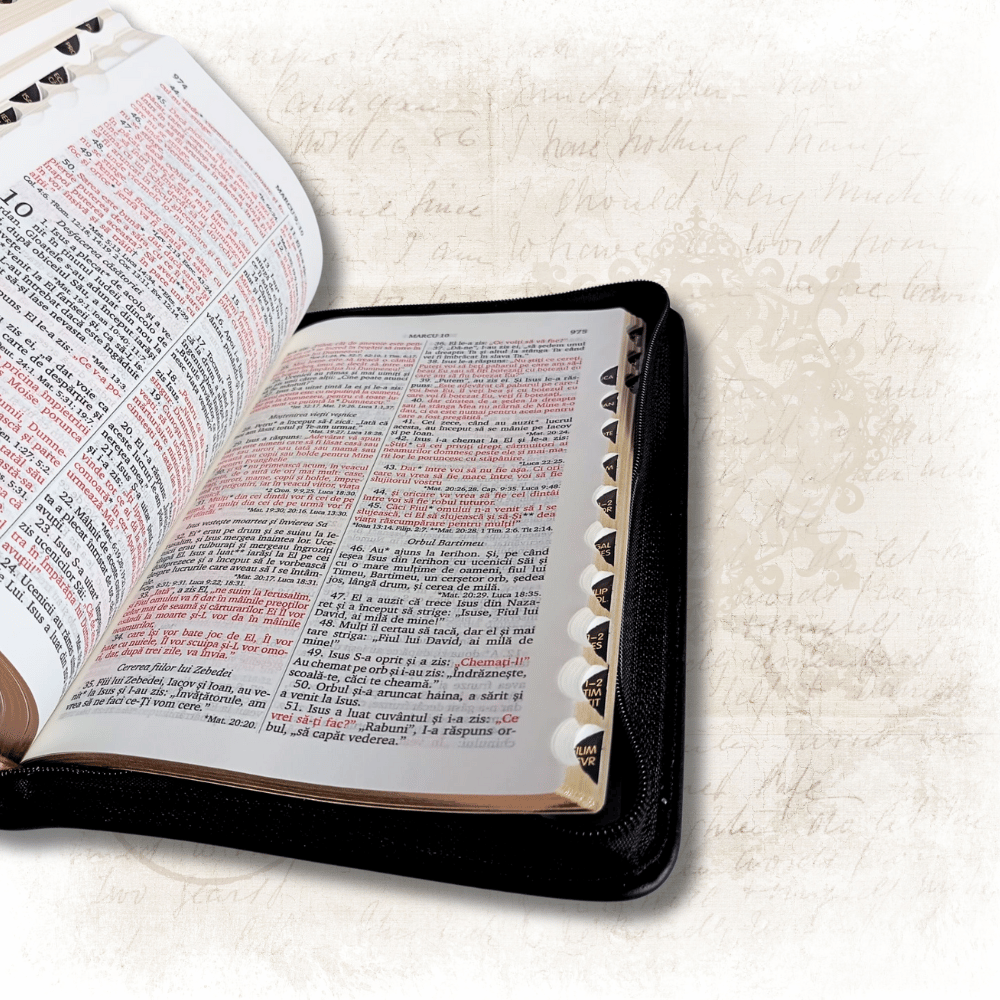 Biblie mare, piele, handmade, roșie, fermoar, index, margini aurii, cuv. Isus cu rosu [SI 076 HM]