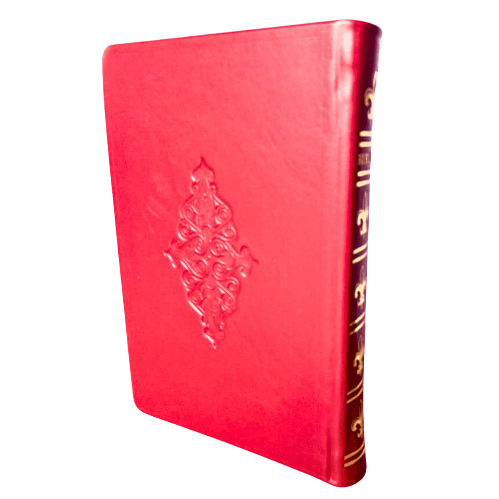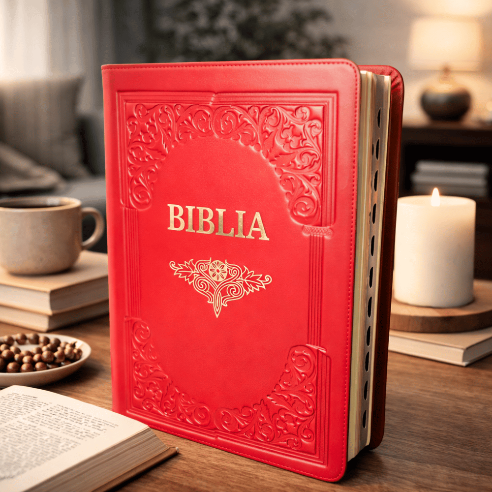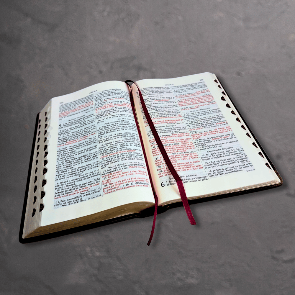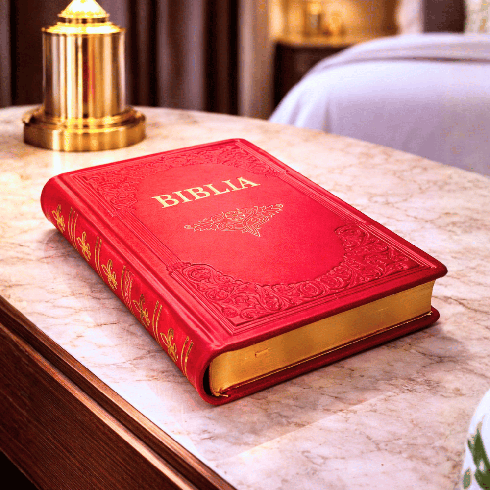 Biblie mare, piele, handmade, roșie, simbol mâini în rugăciune, index, margini aurii, cuv. Isus cu rosu [SI 076 HM]