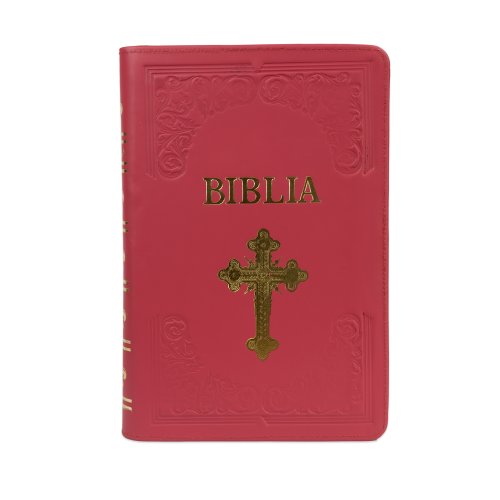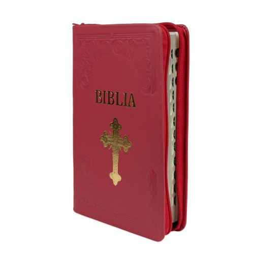 Biblie mare, piele, handmade, roz închis, index, margini argintii, cuv. Isus cu rosu [SI 076 HM]