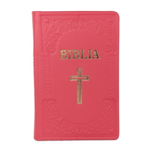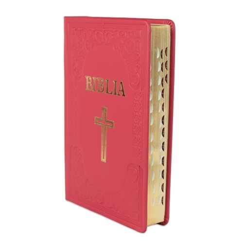 Biblie mare, piele, handmade, roz închis, simbol cruce, index, margini aurii, cuv. Isus cu rosu [SI 076 HM]