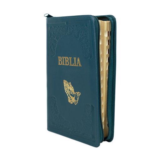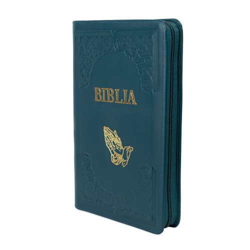 Biblie mare, piele, handmade, verde turcoaz închis, index, margini aurii, cuv. Isus cu rosu [SI 076 HM]