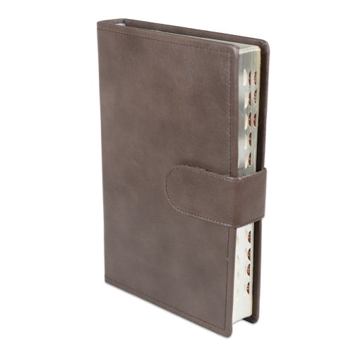 Biblie mare, piele, maro, bareta cu capsa, index, margini argintii, cuv. Isus cu rosu + inel pentru pix [MAR 073 PCI]