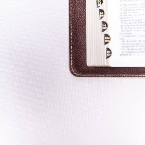 Biblie mare, piele, maro, bareta cu capsa, index, margini aurii, cuv. Isus cu rosu [SI 073 BAR ]