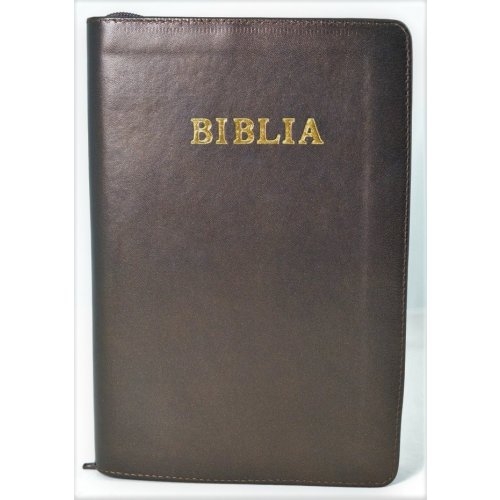 Biblie mare, piele, maro sidefat, fermoar, index, margini argintii, cuv. Isus cu rosu [SI 073 PFI]