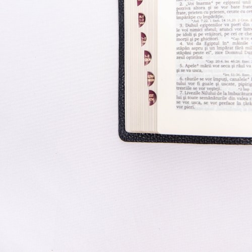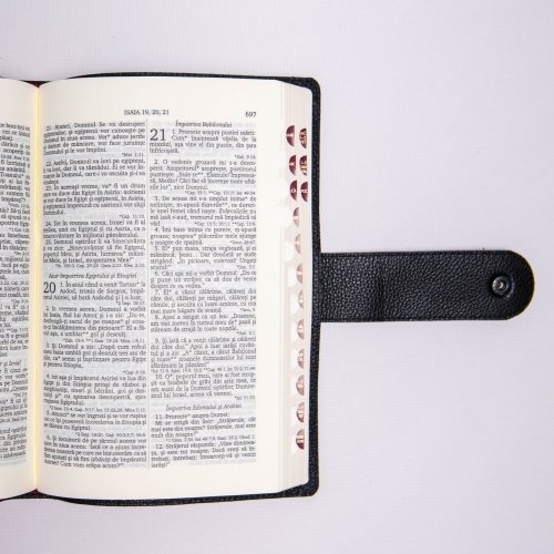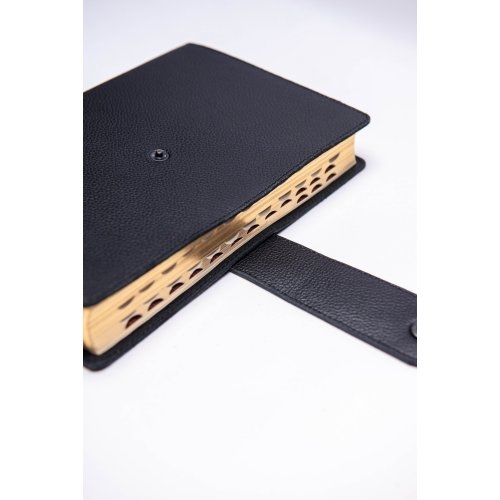 Biblie mare, piele, neagră, bareta cu capsa, index, margini aurii, cuv. Isus cu rosu [SI 073 BAR ]