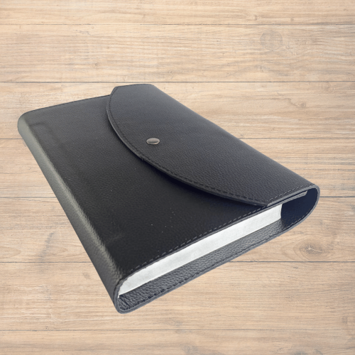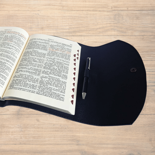 Biblie mare, piele, neagra, clapeta cu capsa, index, margini argintii, cuv. Isus cu rosu + inel pentru pix [MAR 073 PCI]