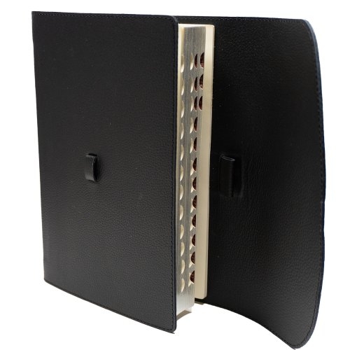 Biblie mare, piele, neagră, clapetă și baretă, index, margini argintii, cuv. Isus cu rosu [SI 073 BAR ]