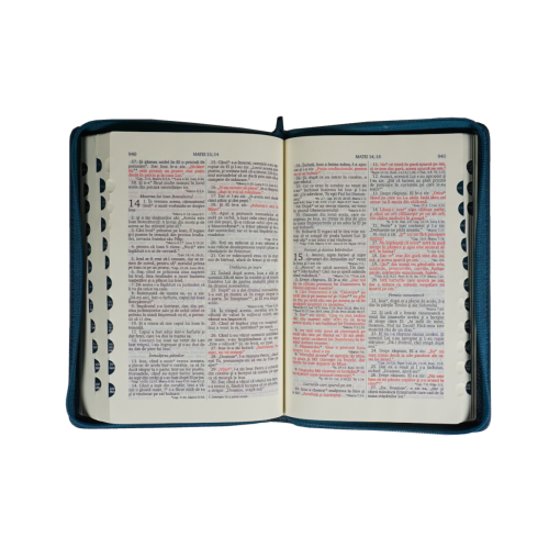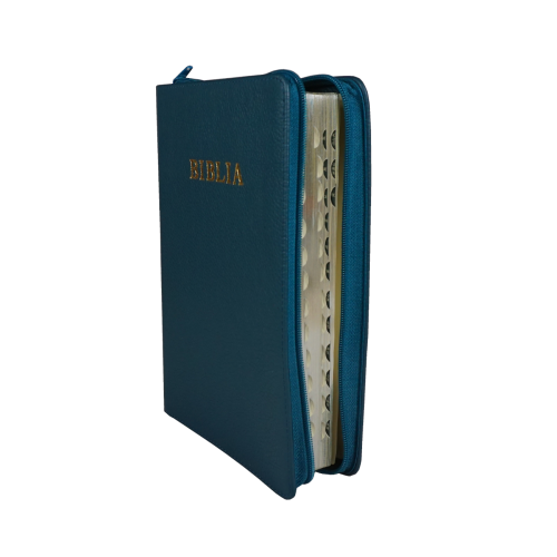 Biblie mare, piele, nuanta de verde, fermoar, index, margini argintii, simbol simpla, cuv. Isus cu rosu [SI 073 PFI]