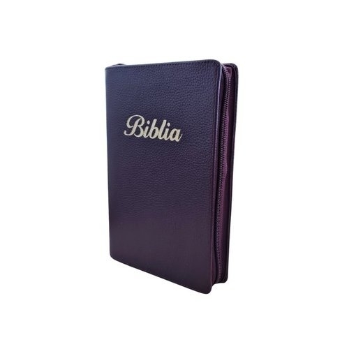 Biblie mare, piele, vișiniu, fermoar, index, margini argintii, cuv. Isus cu rosu + inel pentru pix [MAR 073 PFI]