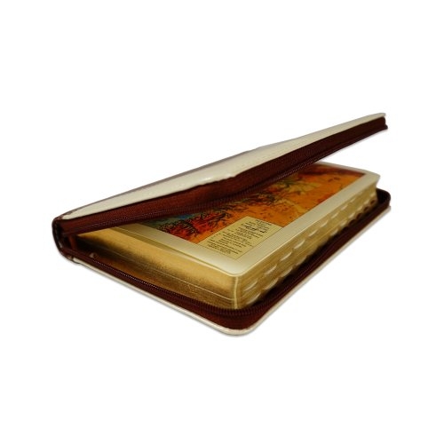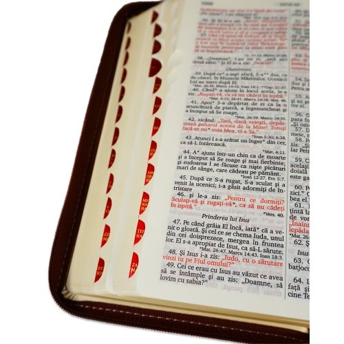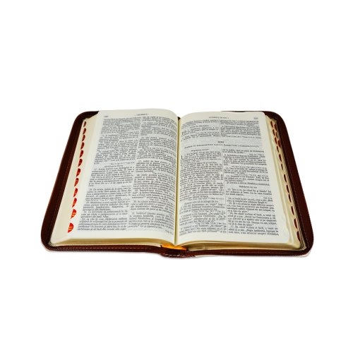 Biblie marime medie, piele ecologică, model maro | ivoire, fermoar, index, margini aurii, hărți, cuv. lui Isus cu roșu [055 ZTI DT]