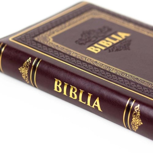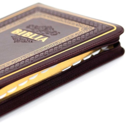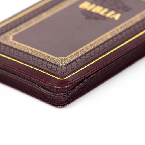Biblie marime medie, piele ecologică, visinie, fermoar, index, margini aurii, cuv. lui Isus cu rosu [057 S]