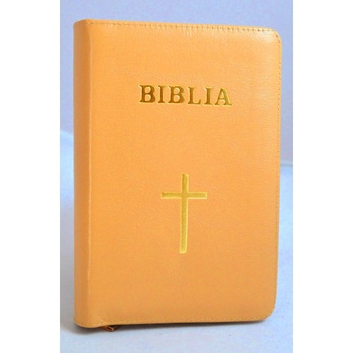 Biblie marime mica, din piele, culoare bej deschis, simbol cruce, fermoar [043 PF]