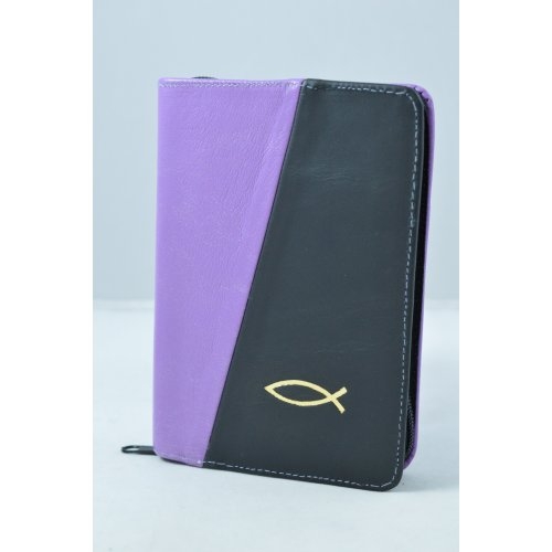 Biblie marime mica, din piele, culoare mov deschis / negru, fermoar, simbol peste [043]