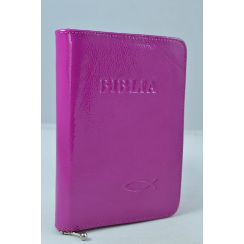 Biblie marime mica, din piele, culoare roz bombon, fermoar, simbol peste [043 PF]