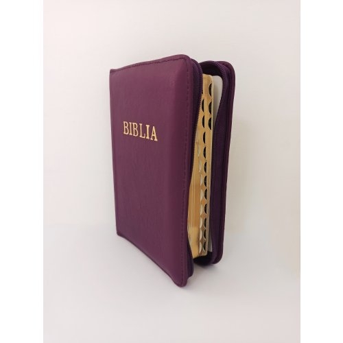 Biblie marime mica, piele,culoare mov inchis, index, fermoar, margini aurii, cuv. lui Isus in rosu,[047 PFI]