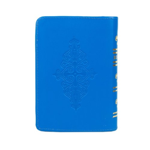 Biblie marime mica, piele, hand made, culoare albastru deschis, index, fermoar, margini aurii, cuv. lui Isus cu rosu [047 HM]