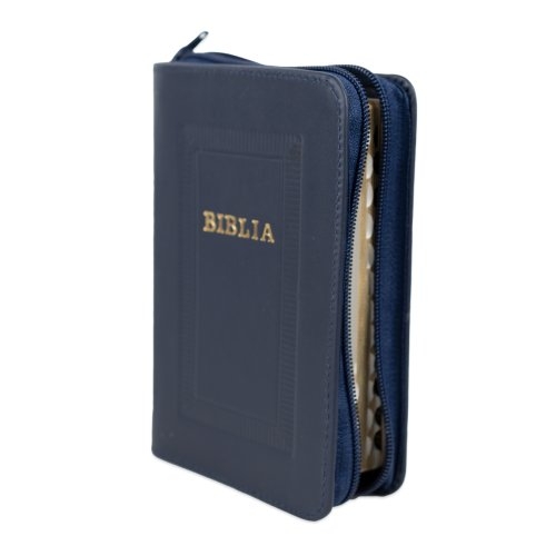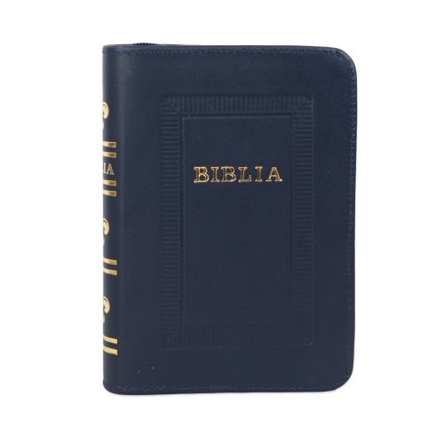 Biblie marime mica, piele, hand made, culoare bleumarin închis, index, fermoar, margini aurii, cuv. lui Isus cu rosu [047 HM]