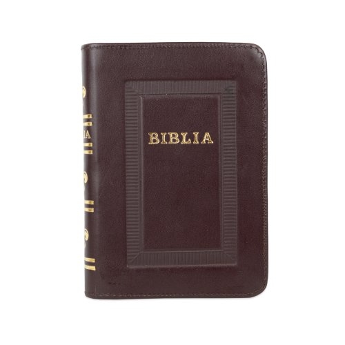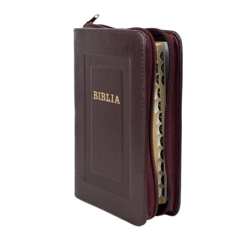 Biblie marime mica, piele, hand made, culoare bordo închis, index, fermoar, margini aurii, cuv. lui Isus cu rosu [047 HM]