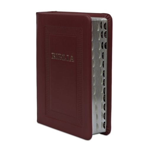Biblie marime mica, piele, hand made, culoare bordo, index, fara fermoar, margini argintii, cuv. lui Isus cu rosu [047 HM]