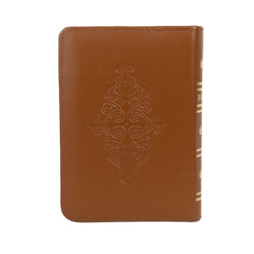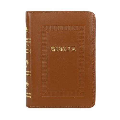 Biblie marime mica, piele, hand made, culoare maro, index, fermoar, margini aurii, cuv. lui Isus cu rosu [047 HM]