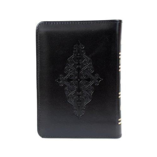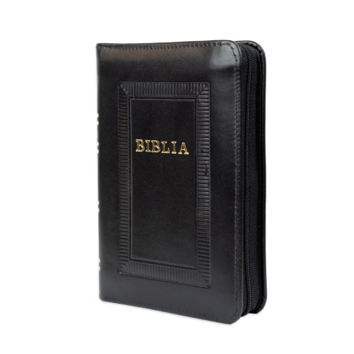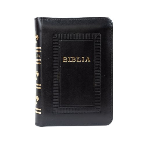 Biblie marime mica, piele, hand made, culoare negru, index, fermoar, margini aurii, cuv. lui Isus cu rosu [047 HM]