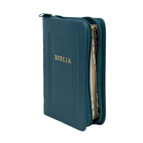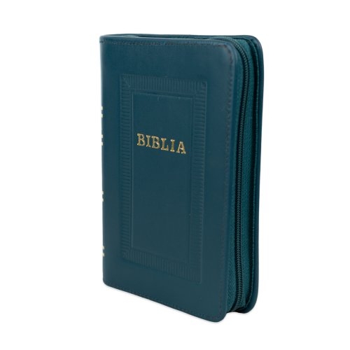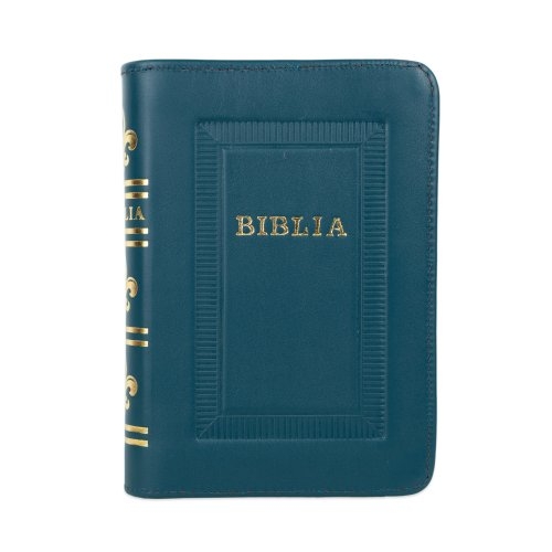 Biblie marime mica, piele, hand made, culoare verde turcoaz închis, index, fermoar, margini aurii, cuv. lui Isus cu rosu [047 HM]