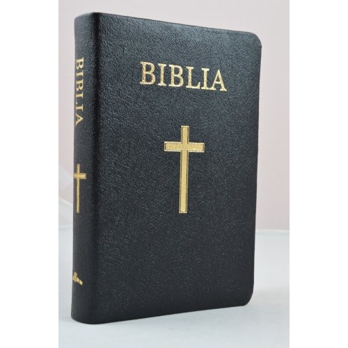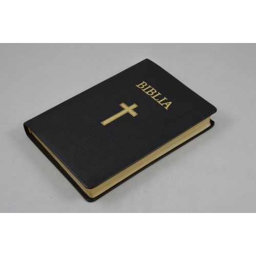 Biblie medie, din piele neagra, cu cruce, margini aurii [063 P]