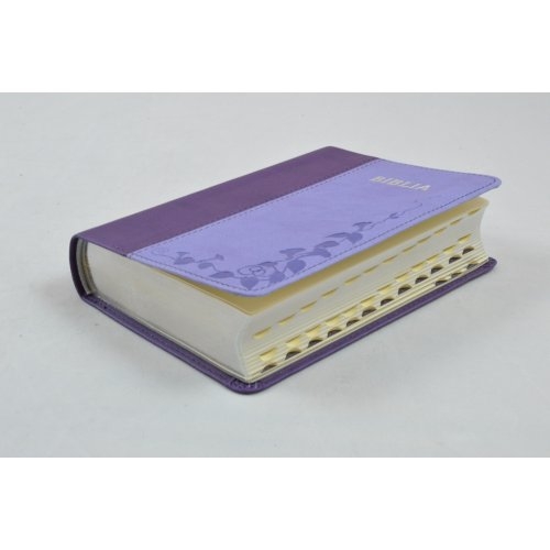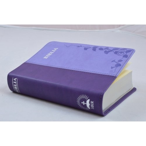 Biblie marime mica, piele ecologica, nuante de mov, index, margini argintate, cuv. Isus rosu [SI 046 TI]