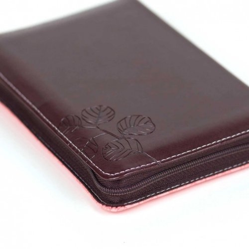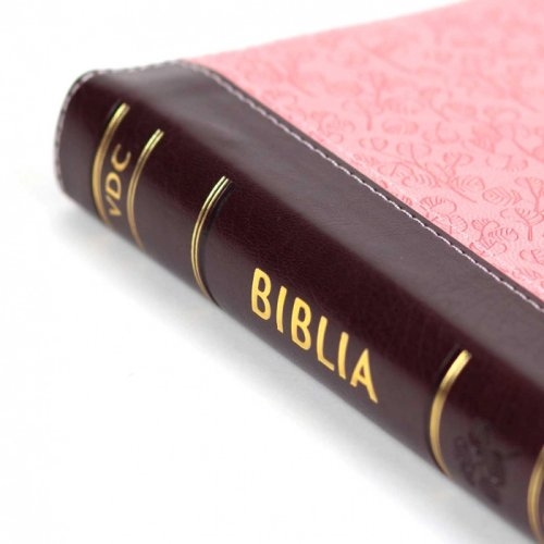 Biblie mica, piele ecologica, roz, fermoar, index, margini aurii, cuv. lui Isus cu rosu [046 ZTI]