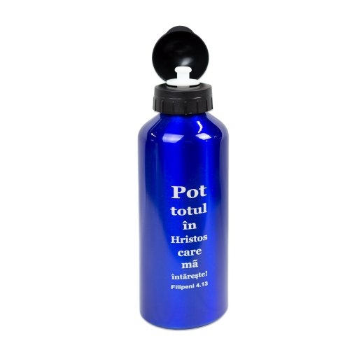 Bidon metalic pentru copii - "Pot totul in Hristos..." (albastru)