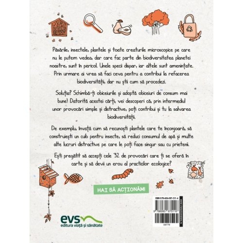 Soluţia? Schimbă-ţi obiceiurile și adoptă obiceiuri de consum mai bune! Datorită acestei cărţi, vei descoperi că, prin intermediul unor provocări simple și distractive, poţi contribui și tu la salvarea biodiversităţii.