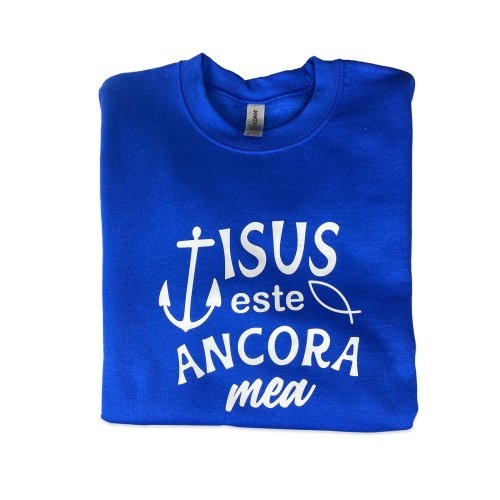 Bluza unisex, marimea L - Isus este ancora mea (albastru)