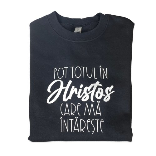 Bluza unisex, marimea M - Pot totul in Hristos (negru)