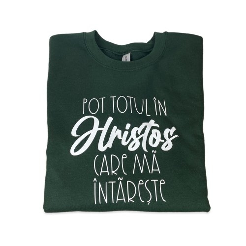 Bluza unisex, marimea M - Pot totul in Hristos (verde)