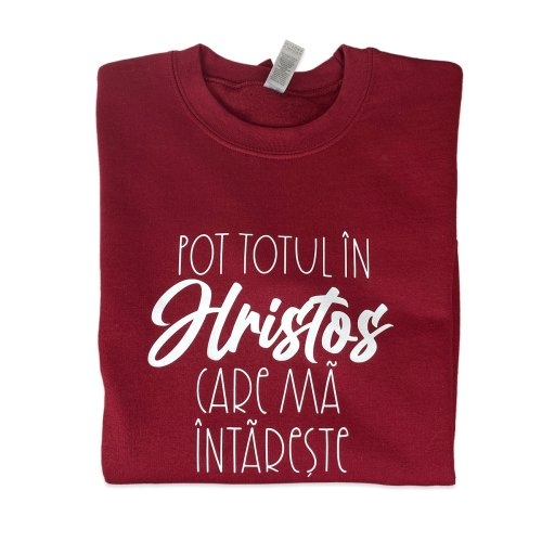 Bluza unisex, marimea S - Pot totul in Hristos (vișiniu)