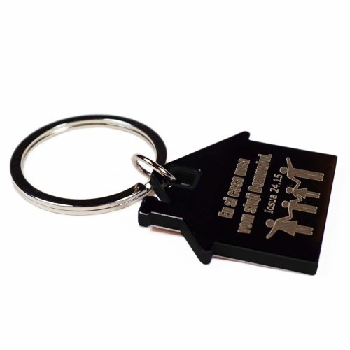 Breloc căsuță interior negru - "Eu si casa mea vom sluji Domnului"