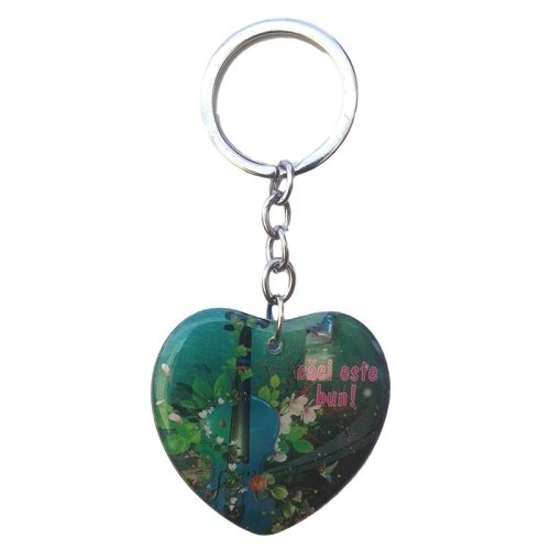 Breloc inima cu vioara metal si plastic-Laudati pe Domnul