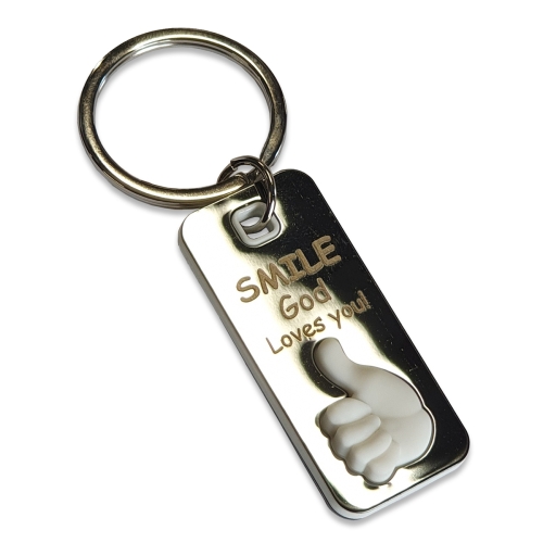 Breloc metal deget 3D - Smile, God Loves you!