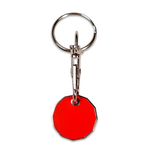 Breloc rosu metalic cu jeton cărucior cumpărături - Verso gravat, Iubire, Semnul Crucii
