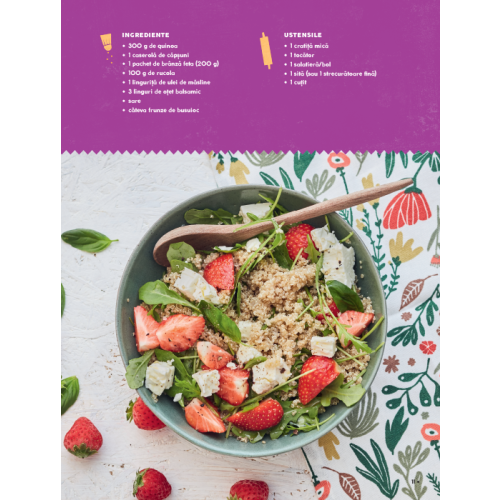 Spaghetele din dovlecei, pizza cu telemea de oaie, fluturii (fals) bolognezi și prăjitura cu sfeclă roșie și ciocolată sunt doar câteva dintre promisiunile apetisante ale acestei cărți pentru copii. Bon appétit!