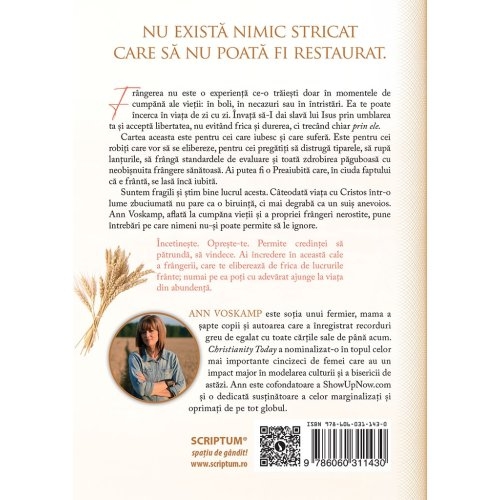 Suntem fragili si stim bine lucrul acesta. Cateodata viata cu Cristos intr-o lume zbuciumata nu pare ca o biruinta, ci mai degraba ca un suis anevoios. Ann Voskamp, aflata la cumpana vietii si a propriei frangeri nerostite, pune intrebari pe care nimeni nu-si poate permite sa le ignore.