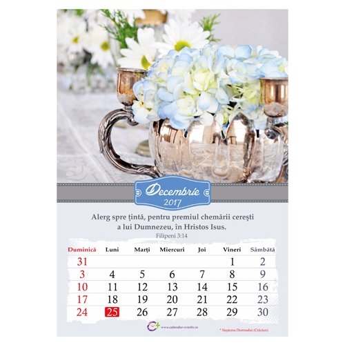 Calendar Crestin (A4) cu versete si flori - 2017