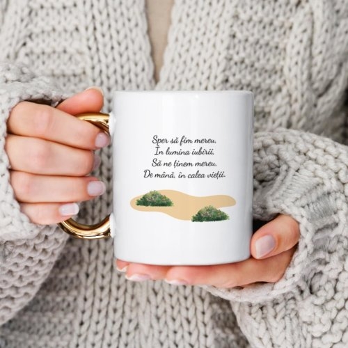Alegeți o cană cu mâner auriu personalizată cu nume pentru a crea un cadou memorabil pentru cei dragi. Fiecare cană personalizată este realizată cu atenție la detalii și calitate superioară, cu mâner auriu, pentru a vă oferi o experiență unică și plină de emoție.