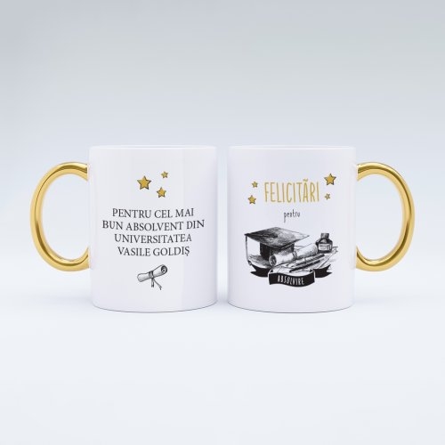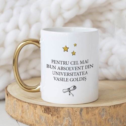 Cană cu mâner auriu personalizata cu text - Absolvire