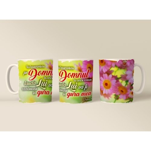 Cană cu mesaj creștin - Voi binecuvanta pe Domnul.. (Psalmi 34,1)