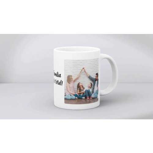 Cană personalizată cu două poze – Familia este totul!