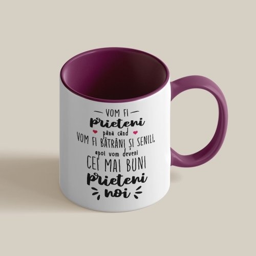 Cană personalizată cu toartă și interior color și două nume – Prieteni