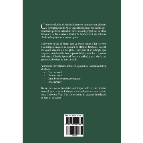 Cu o combinație perfectă între analiza teologică și perspective istorice, această carte este o lectură esențială pentru cei care doresc să înțeleagă mai bine credințele islamice despre sfârșitul timpului și rolul lui Isa al-Masih în acest context. Fie că ești un cititor curios sau un cercetător al religiilor, această lucrare îți va oferi răspunsuri clare și argumente solide, bazate pe Coran și tradiția islamică.