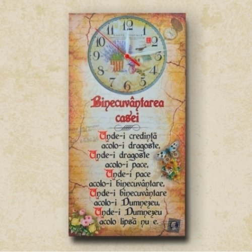 Ceas dreptunghiular de perete - Binecuvantarea casei...(27x53 cm)