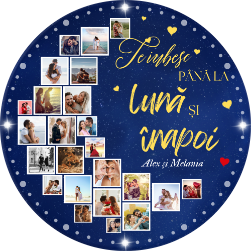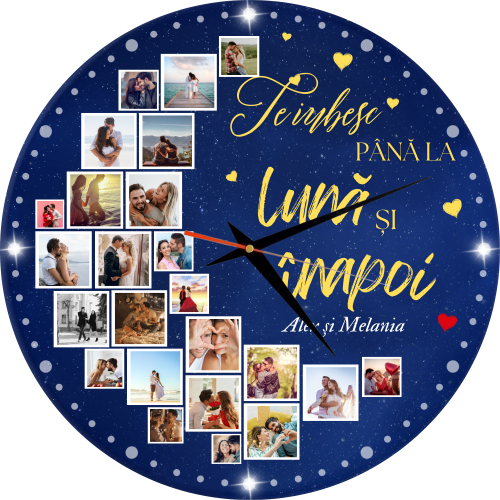Ceas pentru cuplu, personalizat cu 24 poze și două nume